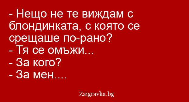Една блондинка цял ден тичала до пощата и обратно. Съседът й, който я наблюдавал, накрая излязъл и я попитал: