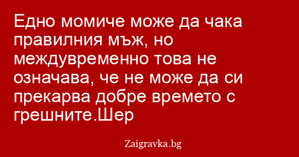 Едно момиче може да чака правилния мъж, но междувременно това не означава, че не може да си прекарва добре времето с грешните.Шер