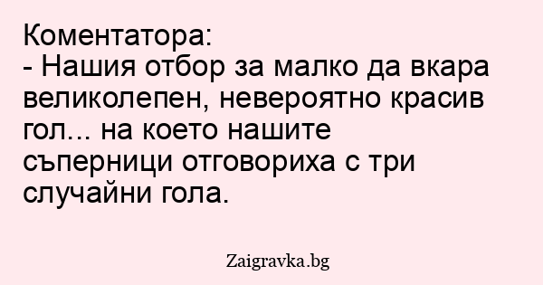- Нашия отбор за малко да вкара великолепен, невероятно красив гол... на което нашите съперници отговориха с три случайни гола.