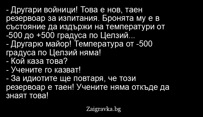 - Другарю майор! Температура от -500 градуса по Целзий няма!