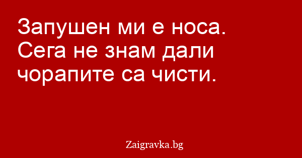 Запушен ми е носа. Сега не знам дали чорапите са чисти.