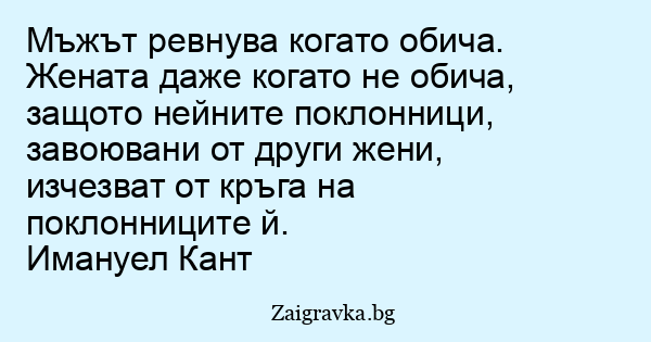 Мъжът ревнува когато обича. Жената даже когато не обича, защото нейните поклонници, завоювани от други жени, изчезват от кръга на поклонниците й.