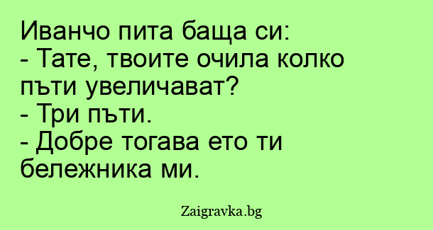 - Тате, твоите очила колко пъти увеличават?