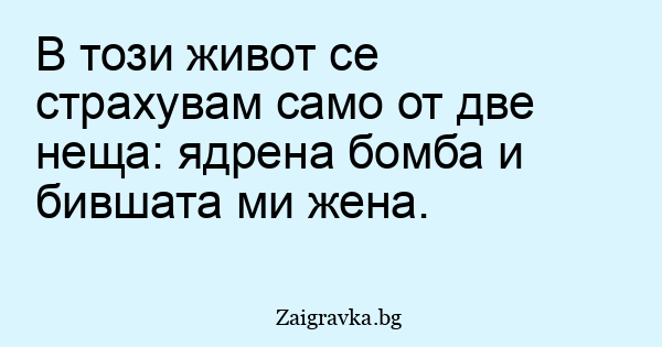 В този живот се страхувам само от две неща: ядрена бомба и бившата ми жена.