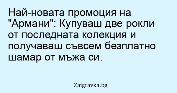 Най-новата промоция на "Армани": Купуваш две рокли от последната колекция и получаваш съвсем безплатно шамар от мъжа си.