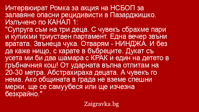 Интервюират Ромка за акция на НСБОП за залавяне опасни рецидивисти в Пазарджишко.