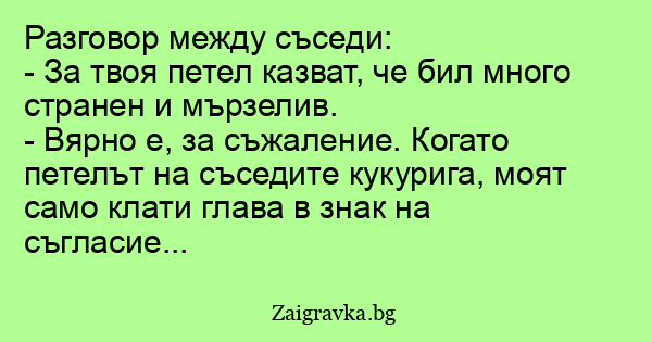 - Вярно е, за съжаление. Когато петелът на съседите кукурига, моят само клати глава в знак на съгласие...
