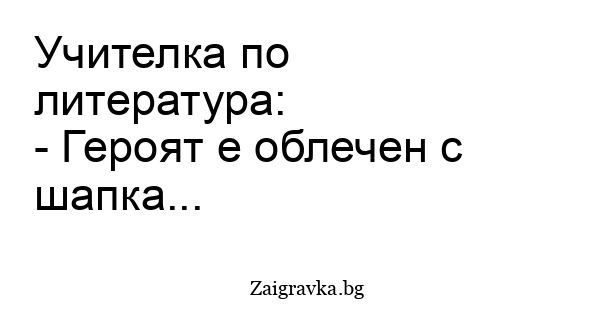 Литераторката:Шекспир е циник, ученици! То вие не го познавате, ама все пак е циник.
