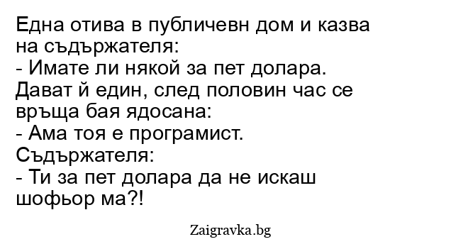 - Ей пич, знаеш ли коя жена е най-добрата маструбаторка??