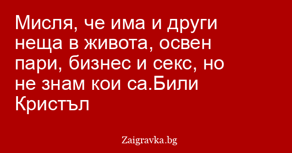Мисля, че има и други неща в живота, освен пари, бизнес и секс, но не знам кои са.Били Кристъл