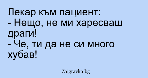 - Докторе, искам да се консултирам с вас относно съпруга ми. Той е решил, че е хладилник...