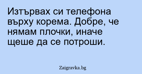 Изтървах си телефона върху корема. Добре, че нямам плочки, иначе щеше да се потроши.