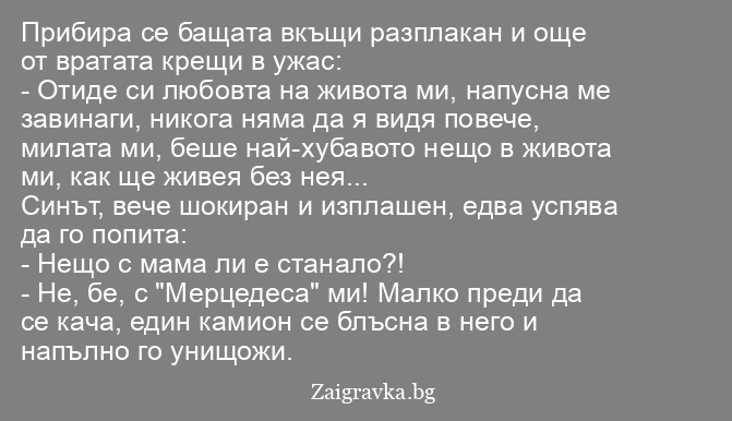 - Не, бе, с "Мерцедеса" ми! Малко преди да се кача, един камион се блъсна в него и напълно го унищожи.