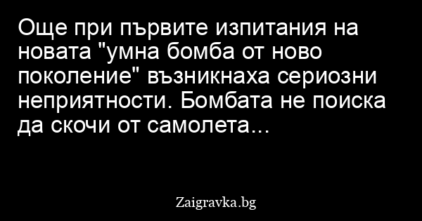 Още при първите изпитания на новата "умна бомба от ново поколение" възникнаха сериозни неприятности. Бомбата не поиска да скочи от самолета...