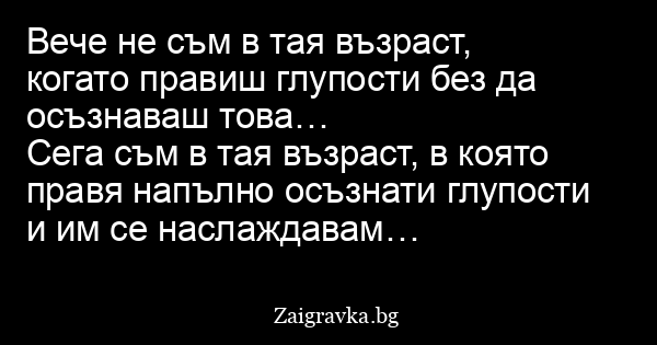 Вече не съм в тая възраст, когато правиш глупости без да осъзнаваш това…