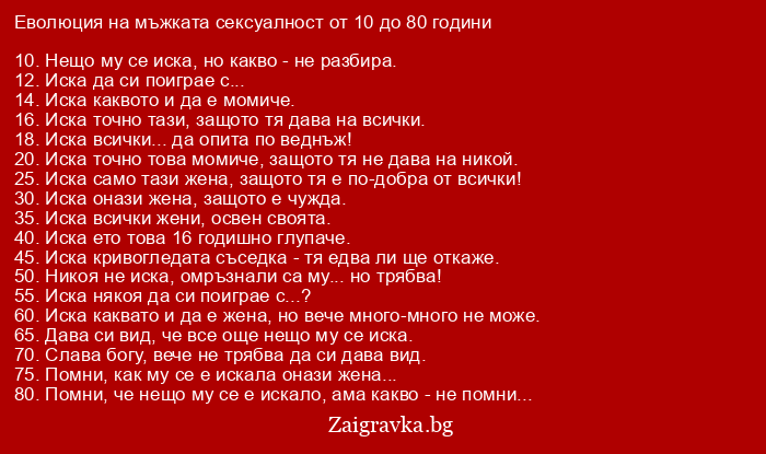 Еволюция на мъжката сексуалност от 10 до 80 години