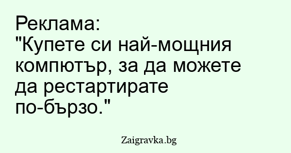 "Купете си най-мощния компютър, за да можете да рестартирате по-бързо."