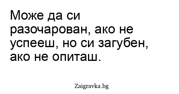 Може да си разочарован, ако не успееш, но си загубен, ако не опиташ.