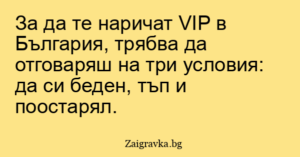За да те наричат VIP в България, трябва да отговаряш на три условия: да си беден, тъп и поостарял.
