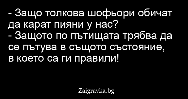- Защото по пътищата трябва да се пътува в същото състояние, в което са ги правили!