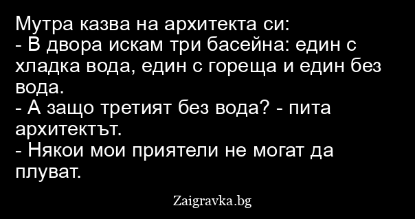 - В двора искам три басейна: един с хладка вода, един с гореща и един без вода.