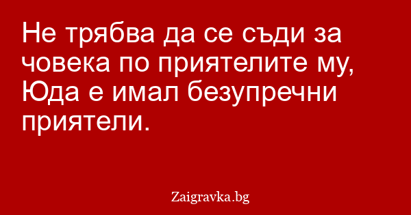 Не трябва да се съди за човека по приятелите му, Юда е имал безупречни приятели.