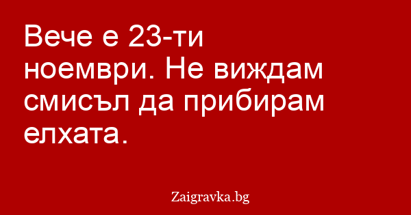 Вече е 23-ти ноември. Не виждам смисъл да прибирам елхата.