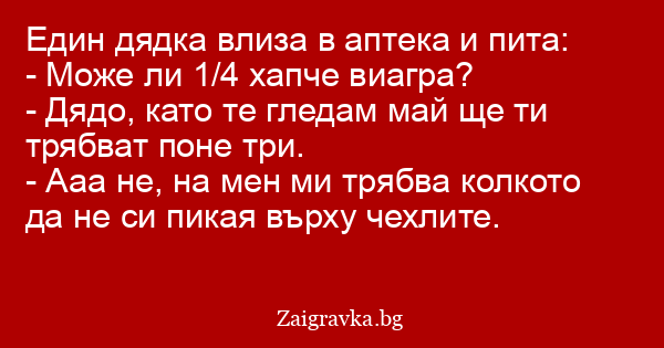 Тя му дала две опаковки. На сутринта като отива на работа го гледа да подскача нервен пред аптеката.