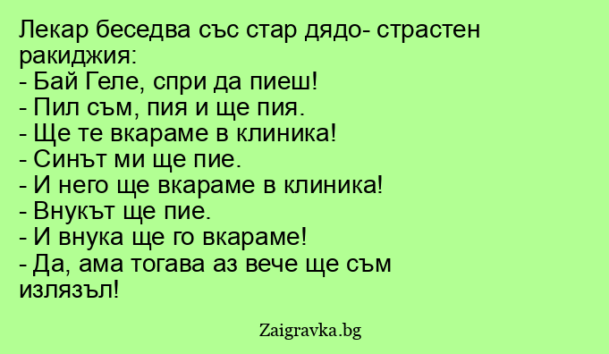 - Не ми и трябва... Кръчмата е на пет метра от дома ми!