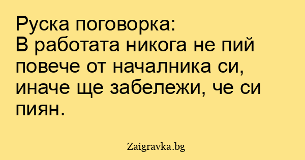 В работата никога не пий повече от началника си, иначе ще забележи, че си пиян.