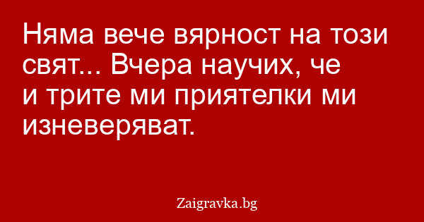 Няма вече вярност на този свят... Вчера научих, че и трите ми приятелки ми изневеряват.