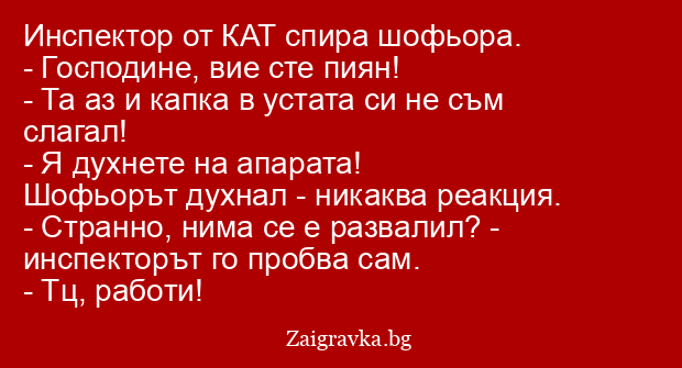 Шофьорът духнал - никаква реакция.