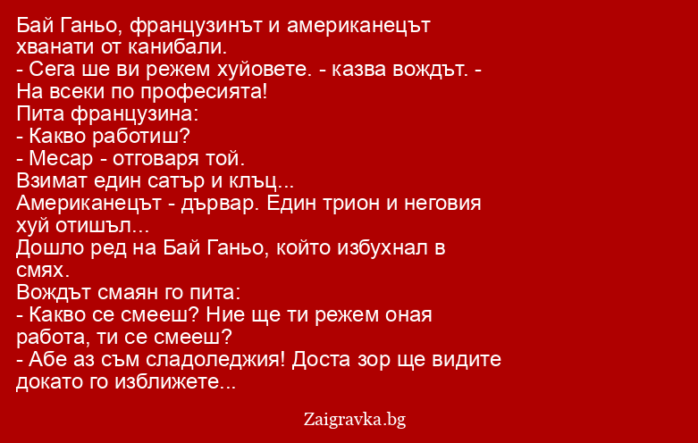 Бай Ганьо, французинът и американецът хванати от канибали.