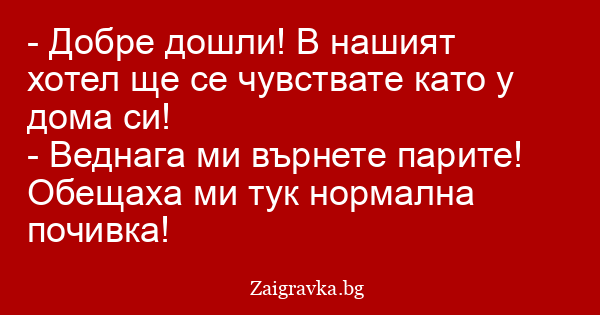 - Добре дошли! В нашият хотел ще се чувствате като у дома си!
