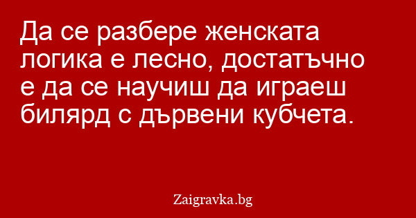 Да се разбере женската логика е лесно, достатъчно е да се научиш да играеш билярд с дървени кубчета.