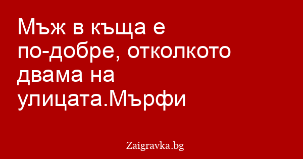 Мъж в къща е по-добре, отколкото двама на улицата.Мърфи