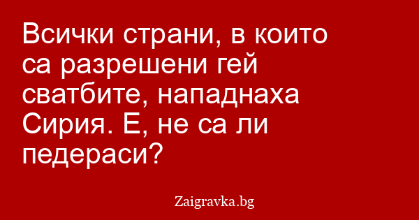 Всички страни, в които са разрешени гей сватбите, нападнаха Сирия. Е, не са ли педераси?