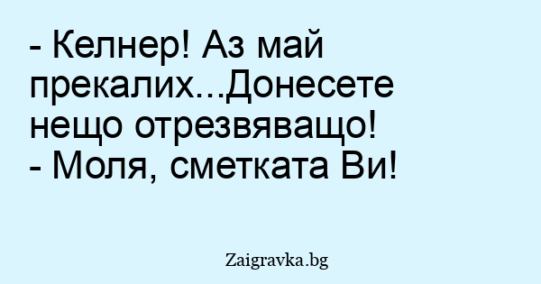 - Келнер! Аз май прекалих...Донесете нещо отрезвяващо!