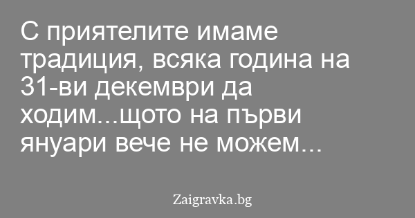 С приятелите имаме традиция, всяка година на 31-ви декември да ходим...щото на първи януари вече не можем...