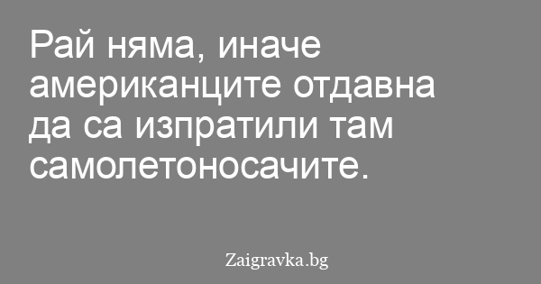 Рай няма, иначе американците отдавна да са изпратили там самолетоносачите.