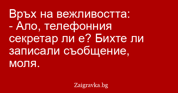 - Ало, телефонния секретар ли е? Бихте ли записали съобщение, моля.