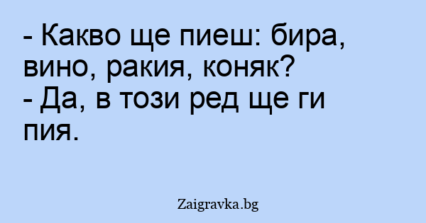 - Какво ще пиеш: бира, вино, ракия, коняк?