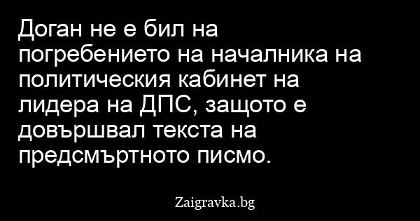 Доган не е бил на погребението на началникa на политическия кабинет на лидера на ДПС, защото е довършвал текста на предсмъртното писмо.