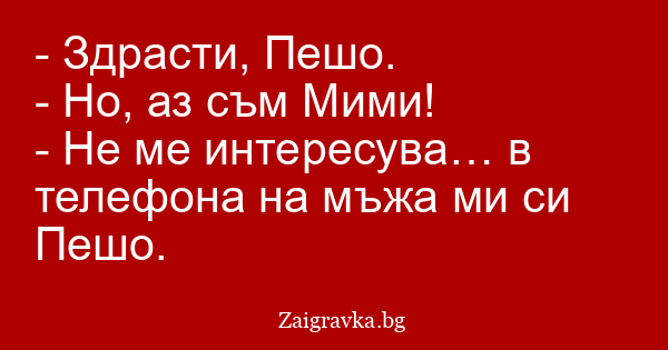 - Не ме интересува… в телефона на мъжа ми си Пешо.