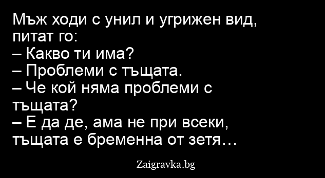 – Е да де, ама не при всеки, тъщата е бременна от зетя…