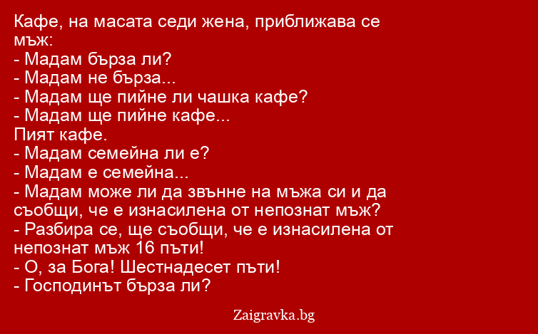 - Мадам може ли да звънне на мъжа си и да съобщи, че е изнасилена от непознат мъж?