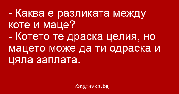 - Котето те драска целия, но мацето може да ти одраска и цяла заплата.