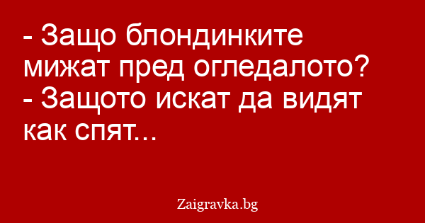 Блондинка отишла на църква. През това време попът се разхождал насам-натам и мятал кандилото. Блондинката го гледала, гледала, накрая не се стърпяла и му рекла: