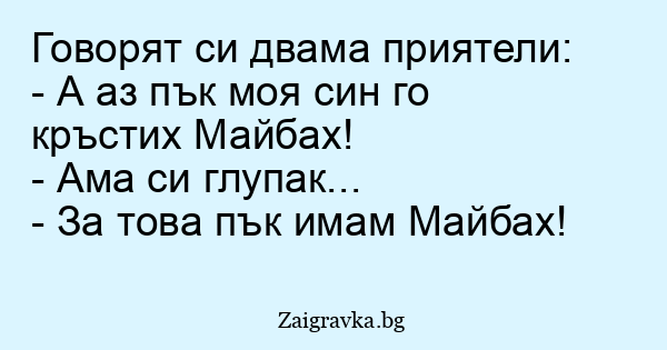 - А аз пък моя син го кръстих Майбах!