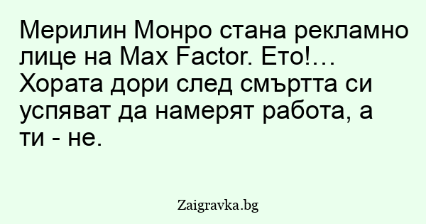 Мерилин Монро стана рекламно лице на Max Factor. Ето!… Хората дори след смъртта си успяват да намерят работа, а ти - не.